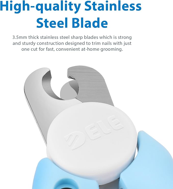 - 3.5mm thick stainless steel sharp blades which is strong and sturdy construction designed to trim nails with just one cut for fast, convenient at-home grooming. Use the dog nail clippers to snip your pups nails cleanly, evenly and without pain to your pet