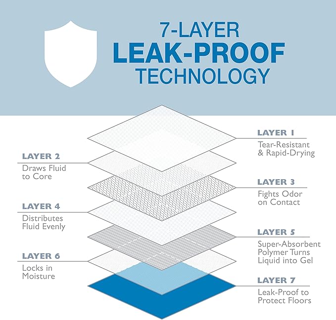 - 7-LAYER LEAK-PROOF TECHNOLOGY - Exclusive Floor Armor Leak-Proof System draws fluid to the core and locks in moisture
