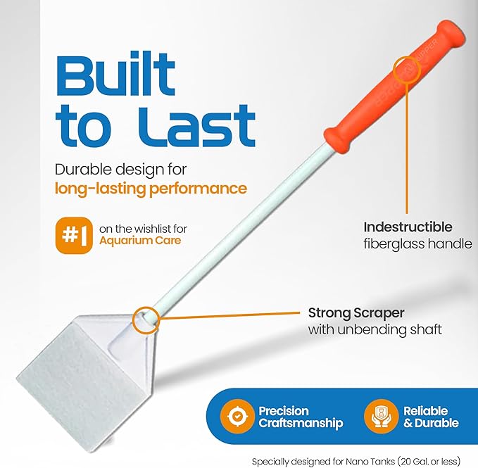 - Extended Reach: The long handle of this fish tank scraper helps you reach tough spots, making it an essential aquarium cleaning tool for deep maintenance.