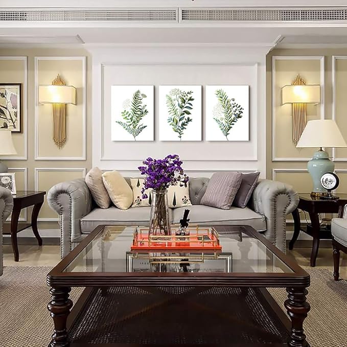 3 Pieces Framed Wall Art for Living Room Bathroom Wall Decorations Kitchen Wall decor Canvas Print decor modern Simple Bedroom Home Decoration Green leaves Poster wall paintings