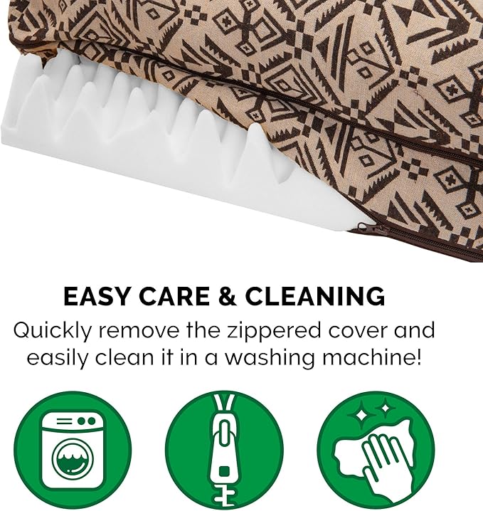 - Machine Washable Easy Care - The dog bed cover is completely machine washable and is easily removed with a two zipper design that allows access to the foam base and bolsters; for more specific care instructions, please refer to the hang tag and/or seam label.