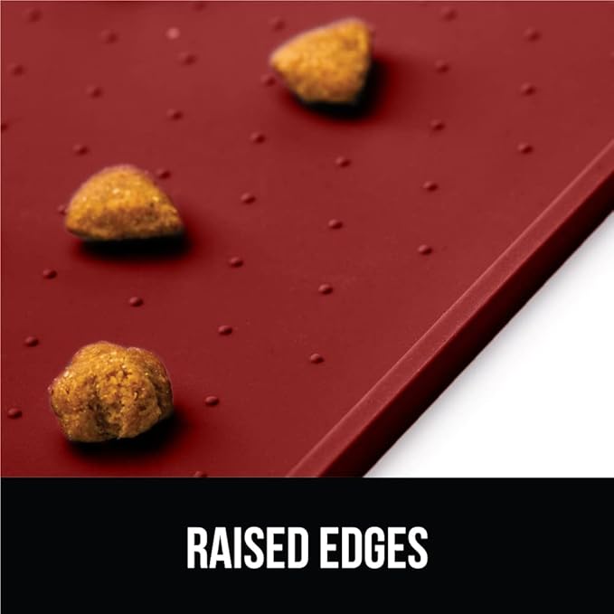 GORILLA GRIP 100% Waterproof Raised Edge BPA Free Silicone Pet Feeding Mat, Dog Cat Food Mats Contain Spills Protects Floors, Placemats for Cats and Dogs Water Bowl, Pets Accessories 23x15 Red