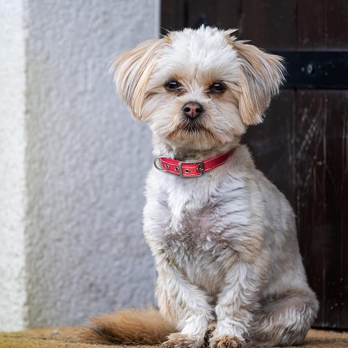 Fida Heavy Duty Dog Collar, Ultra Comfortable Soft Neoprene Padded, Adjustable Reflective Nylon Pet Collar with Durable Metal Belt Buckle for Small Breeds (S, Red)
