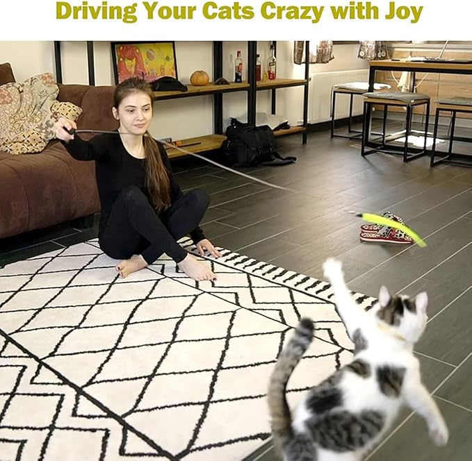 - 【GET YOUR CATS MORE EXERCISE】It will bring your and your cats a lot of happy time. your cat will try to catch the worms and meanwhile get a lot of exercise which she/he need. Especially great for house-cats.
