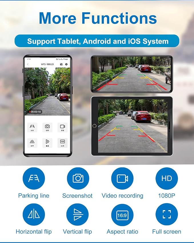- 【Stable WiFi Connection】This wireless backup camera ensures a stable hotspot signal, covering distances of up to 197FT/60m without obstacles. It's perfectly suited for vehicles under 30ft in length (Note: Transmission distance may vary based on vehicle type and environment). The camera can be conveniently powered via USB