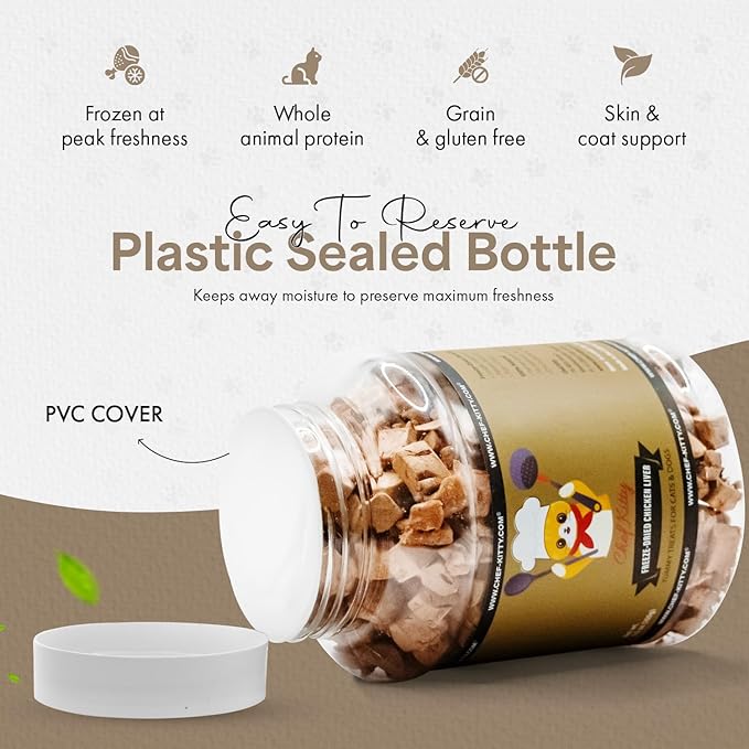 - Why Freeze Dried Chicken Liver Treats? - Like people, animals crave natural sources of protein. Our freeze-drying process ensures each of our freeze dried treats for cats and dogs keeps the robust flavor and vital nutrients of fresh meat. Our treats are single Ingredient, No Additives: Healthy, all-natural treat for cats and dogs – no hormones, preservatives, or fillers.