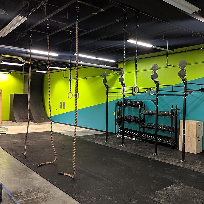 - 【Made in the USA】Crafted for optimal versatility and effortless maintenance, our 4' and 3’ wide rubber floor mat rolls, proudly manufactured in the USA, are a perfect addition to gyms, workout areas, and various commercial settings. These gym floor mats, designed for simple customization around walls, corners, and objects, offer a seamless padded surface with endless applications, making them ideal gym floor options.
