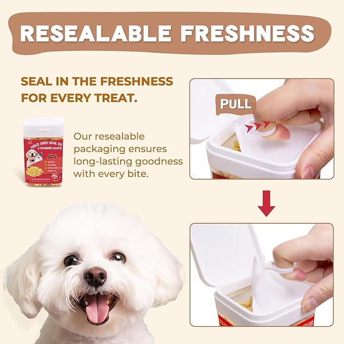 - Irresistible Flavor Fusion. Satisfy pets' taste buds with the delightful combination of quail egg yolk and sweet cranberry. Treat your furry friends to a burst of flavor!