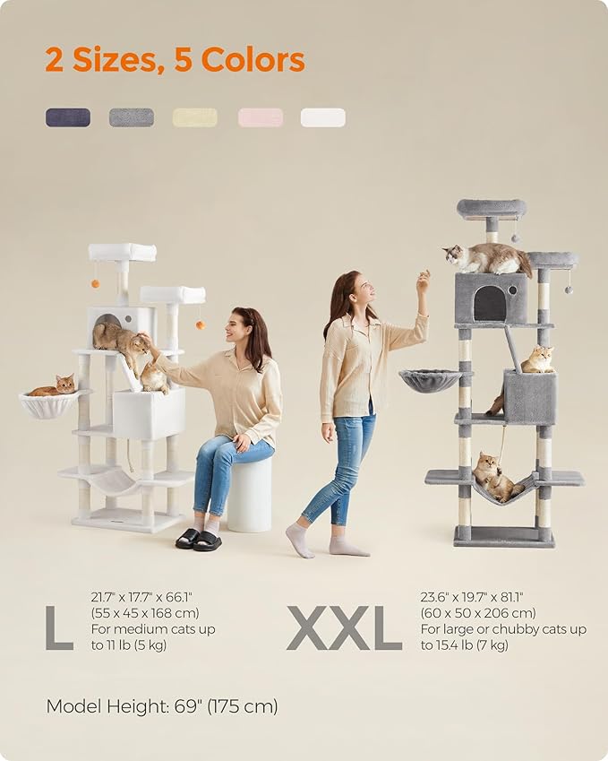 - [Easy to Assemble] With a simple structure, step-by-step instructions, and labeled parts, assembling this tall cat tree is as easy as building blocks