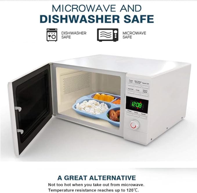 - Wheat Straw Material : PUPOPIK divided plates are made of wheat straw and food-grade PP material, a strong and durable product. Also, they are free of BPA. Non-toxic, odorless, Eco-friendly and sustainable to environment. Microwave and Dishwasher Safe.Not too hot when you take out from microwave. Temperature resistance reaches up to 120ā