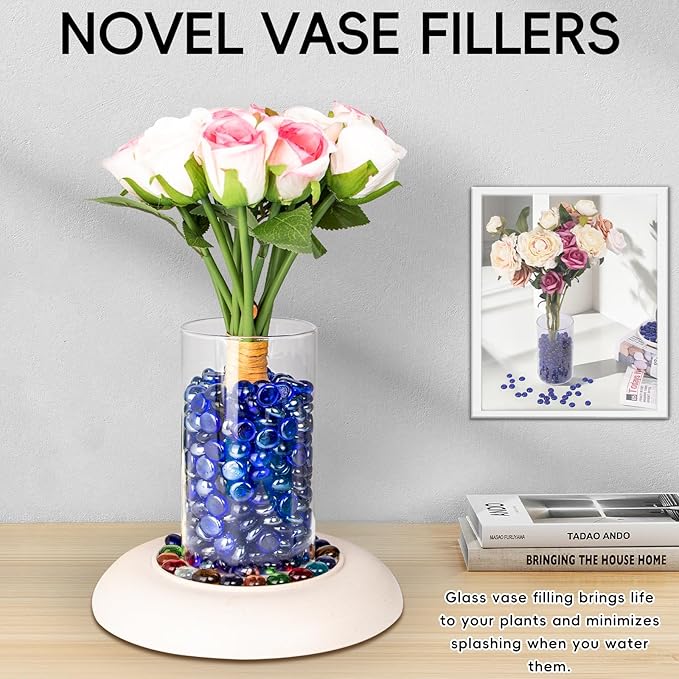 - 【Widely Applied】These flat marbles can serve as vase fillers for centerpieces,decorative accents for pool or landscape bottoms, home décor, photography backdrops, gardens, weddings and parties, fire pit glass rocks, as well as glass beads for crafts.