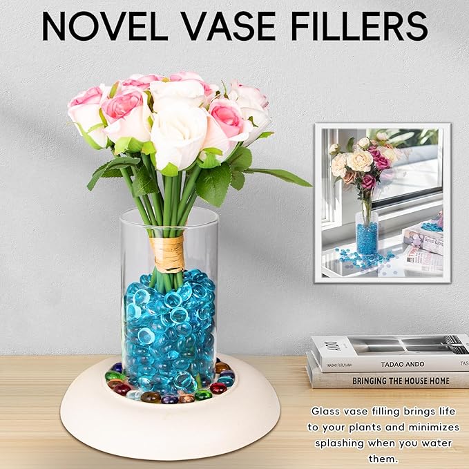 - 【Widely Applied】These flat marbles can serve as vase fillers for centerpieces,decorative accents for pool or landscape bottoms, home décor, photography backdrops, gardens, weddings and parties, fire pit glass rocks, as well as glass beads for crafts.