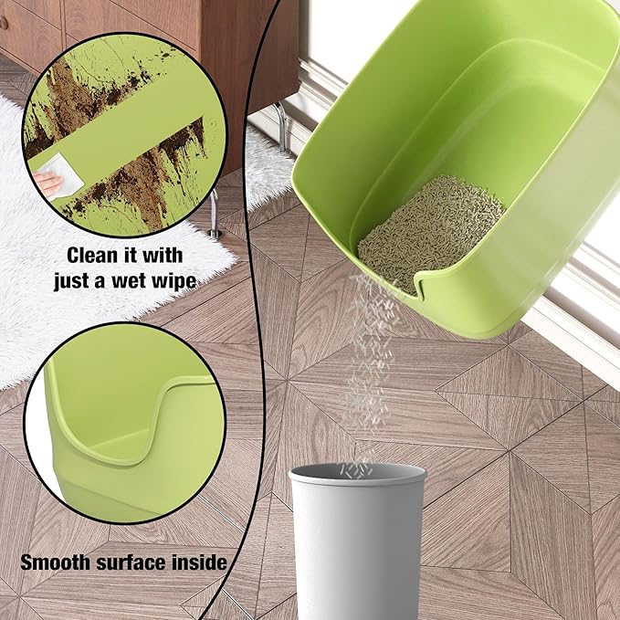 - No Gaps: One-piece molded construction requires no assembly, simple and no gaps, cat litter won't leakage or get stuck in the crevices, say goodbye to annoying cleaning problemsļ¼making cleaning easier.