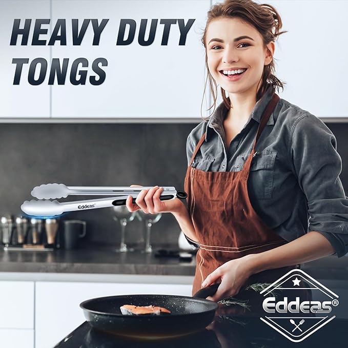 - FOOD GRADE SILICONE - Eddeas tongs for cooking featuring a food grade silicone head, the tongs are gentle on your nonstick cookware so you can worry less about scratching and wear and tear, silicone is heat resistant up to 484 degrees Fahrenheit, making it a great option for nearly any cooking task.