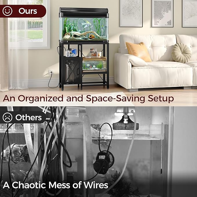 - Easy Power Solution: The fish tank stand, designed for 20-37 gallon tanks, includes 2 AC outlets and 2 USB ports, making it perfect for powering aquarium electronics such as lights and filters. Simplify aquarium maintenance with a handy socket