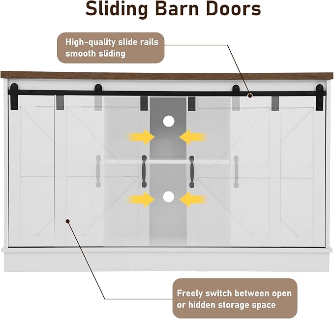 Farmhouse 55-75 Gallon Fish Tank Stand with Power Outlet, Aquarium Stand with Cabinet&Sliding Barn Door, Heavy Duty Reptile Tank Stand for 2 Fish Tank/Turtle Tank/Reptile Terrarium, White