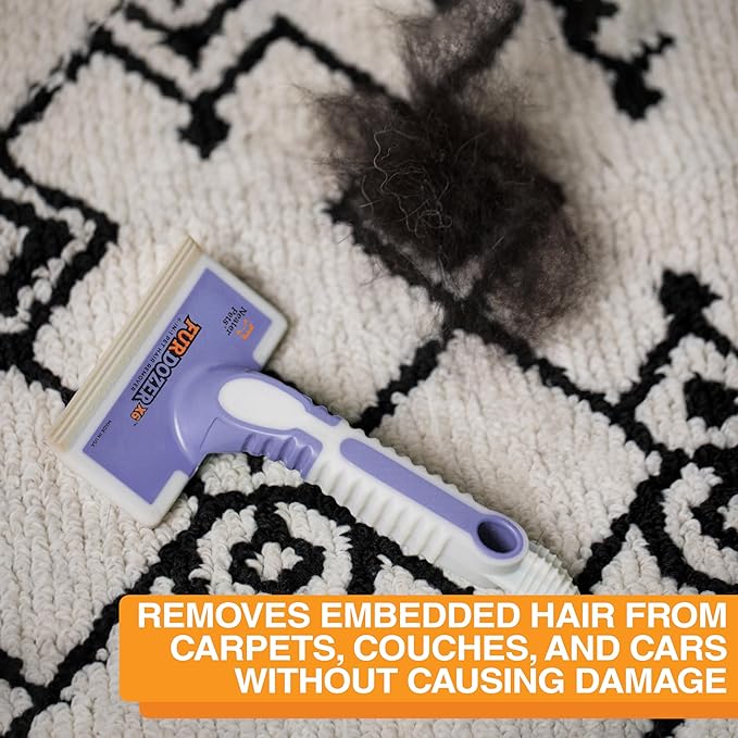 - WORKS ON MULTIPLE SURFACES & EASY TO USE - The FurDozer combines a patented revolutionary design with hi-tech materials to work on multiple surfaces, including Carpets, Cars, Couches, and more! It is also super easy to use. Simply hold the tool flat and apply pressure to dig our embedded hair, collect hair into a pile, and toss! Unlike lint rollers that have a lot of paper waste, the FurDozer is reusable, eco-friendly, and easy to clean.