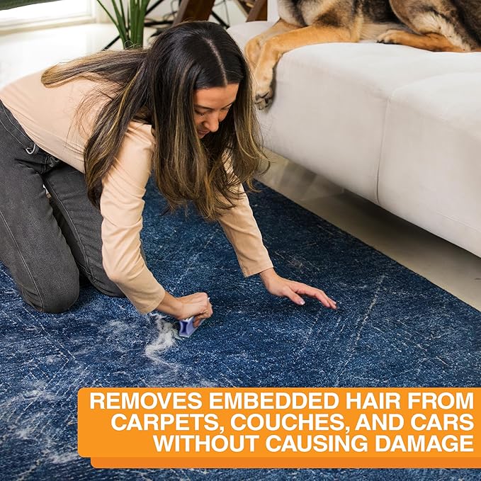 - GREAT FOR EMBEDDED HAIR - The top of the FurDozer X3 can get deep into carpets and couches to remove embedded hair that you didnāt even know was there. Not just for pet hair, the FurDozer will also help to collect and clean hair, lint, and other debris from your car, furniture, rugs, and more.