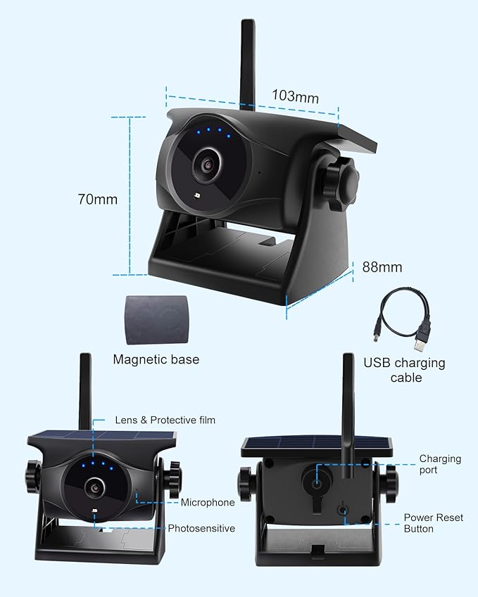 - 【Powerful Magnets & One-Minute Installation】The strong magnetic base makes installing this wireless backup camera a breeze—just attach it to any metal surface, no drilling required. Its compact size (4.05x2.75x3.46in) ensures portability and allows for easy one-handed installation. Transfer it effortlessly between vehicles. Setup is quick: simply power on the camera, connect to WiFi via the INSEECam app, and you're ready to go