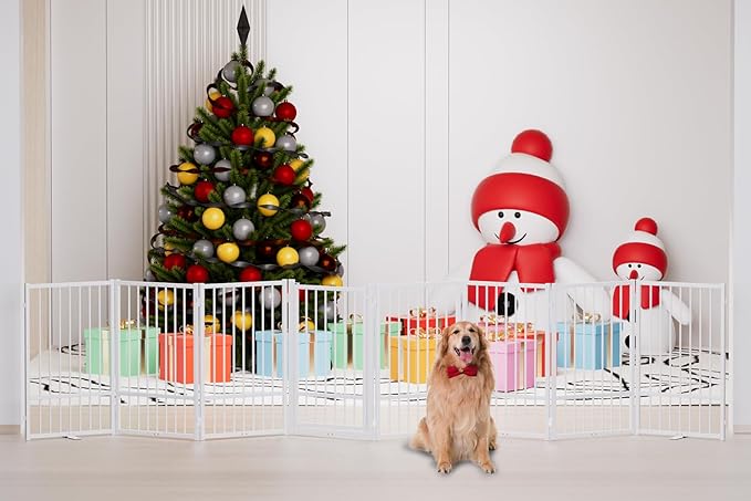 - [Versatile Sizes]: Our pet dog gate is available in 24-inch and 32-inch heights, perfect for puppies, small and medium dogs pets. Multi-choice of 2 panles, 4 panles and 6 panles, suitable for stairs, kitchens, bedroom doors, corridors and other indoor and outdoor forbidden areas.