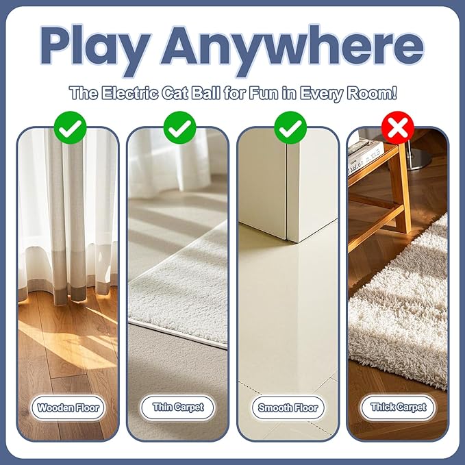 - ✅【Stimulates Natural Hunting Instincts】 Watch indoor cats stalk these automatic cat ball toys like real prey! Electric ball's LED light mimics erratic prey movements, triggering natural chasing/batting/pouncing - perfect interactive cat toys for apartment-bound felines needing physical & mental exercise.