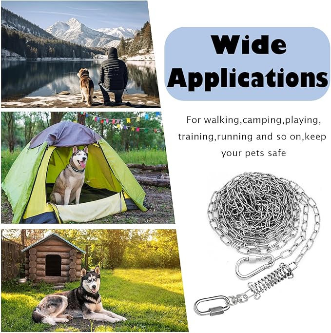 25ft Heavy Duty Chew Proof Dog Tie Out Chain Leash with Shock Absorbing Spring&Lockable Hooks-Up to 200Lbs,Use for Yard,Garden,Camping or Travel