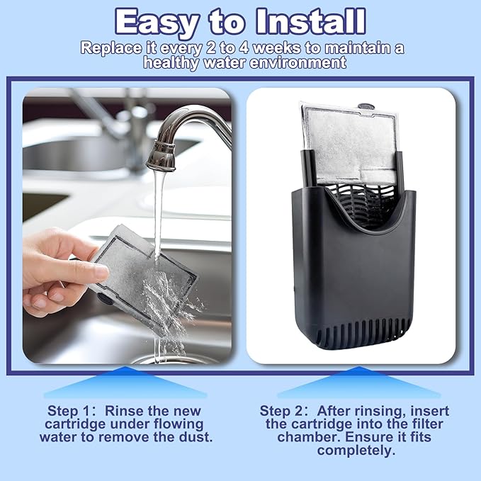 - Suggestions for Use: Suggest to change filter cartridge every 2-4 weeks. Regular cleaning or replacement of the filter cartridge helps to extend the service life of the fish tank filters,while the maintenance is simple, which helps to maintain the long-term stability of the water quality of the aquarium.