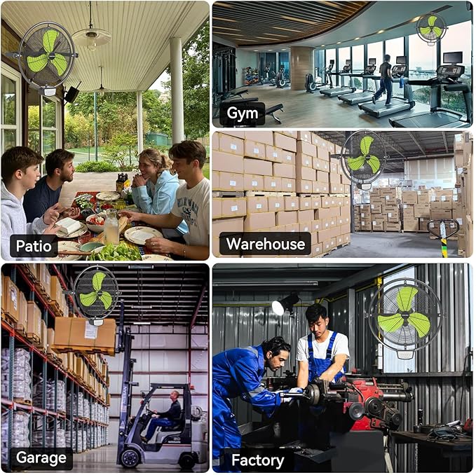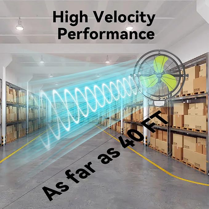 - Powerful Airflow & Wide Coverage: Fanniverse 20" wall-mounted oscillating fan delivers up to 5200 CFM of airflow with a reach of 40 ft. Features 80° oscillation and 300° vertical tilt for wide-area coverage—ideal for indoors, garages, patios, workshops, and warehouses.
