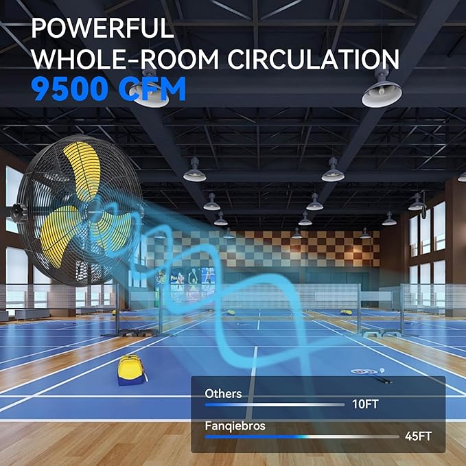 - ๐๐จ๐ฐ-๐๐จ๐ข๐ฌ๐ ๐๐๐ฌ๐ข๐ ๐ง - The heavy-duty wall fan operates at a high speed of 2600 CFM with a noise level of only 54dB, which is lower than the industry standard, creating a quieter gathering or working environment