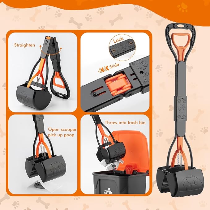 - Easy Use: Dog poop scooper for yard and a walk Received and ready to use, just push the parts together and lock into place, no tools required. WLQiu Dog Pooper Scooper Set saves your cleaning timeāA more relaxed pet-raising lifestyle for U!