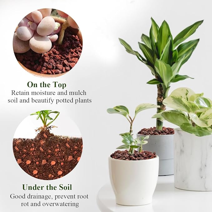 - 【Lava Rocks for Plants】Adding lava rocks mulch to maintain plants like orchids, succulents, cacti, and bonsai trees ensures proper drainage while maintaining moisture. It is not only aesthetically pleasing but also prevents weeds from growing