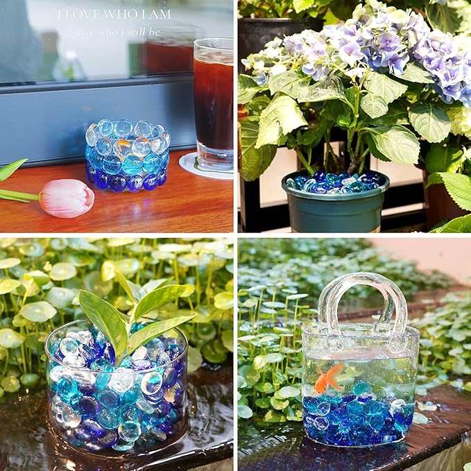 - Multi-Purpose Decor : Perfect as vase filler for weddings, events, fish tank gravel for aquarium landscapes, table centerpiece accents, or DIY art crafts, Resin jewelry, mosaics, epoxy coasters, mixed-media sculptures, candle holder bases.
