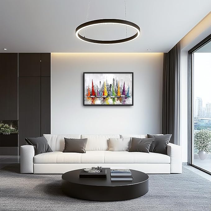 Framed Large Sailboat Wall Art for Living Room, Oversized Abstract City Wall Decor Colorful Sailboat Canvas Painting Pictures Modern Artwork for Living Room Bedroom Office Dinging Room 36"x24"