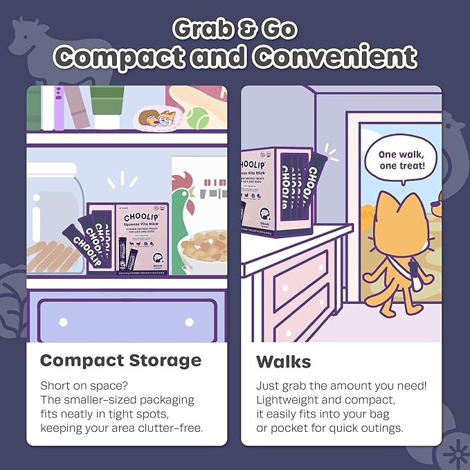 - COMPACT DISPENSER PACK: This Brain Support pack includes 49 sticks to treat your cat or dog. Itās perfect for quick, grab-and-go use, easy to carry in a bag for trips, or convenient to keep near your pet supplies.