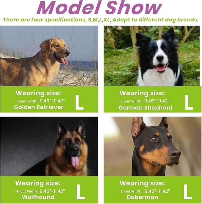 - PLEASE MEASURE BEFORE BUYING:Measure both snout circumference and snout length before purchasing. If your dog's snout length exceeds the size range by about 1 inch, choose the next size up. For long-snout breeds like Dobermans, make sure the snout length fits as well.