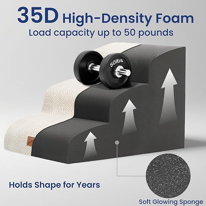 - Easy Setup & 3 Perfect-Fit Sizes: Vacuum packaging for easy transportation - expands to the perfect height within 2 days! Put on the cover and it's ready to use. This pet stair comes in three optional sizes, suitable for most sofas and beds, making it convenient for pets to climb up and down. Note: sponge size may vary slightly during expansion