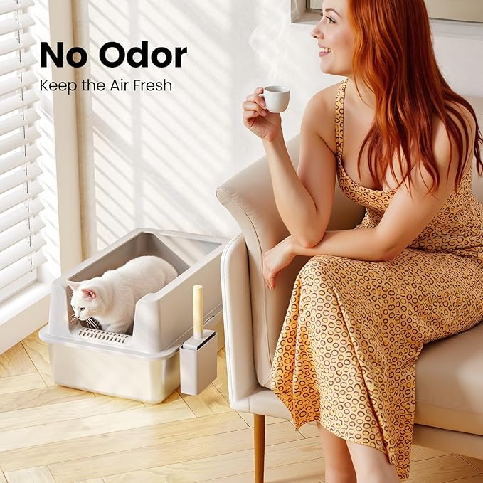 - 【EFFORTLESS ODOR CONTROL】Engineered to absorb urine and mask odors effectively, this steel litter box ensures a pleasant environment for both you and your cat. Unlike traditional plastic boxes, our extra large litter box is easy to clean—simply rinse with water and wipe with a cloth. Plus, with the included wall-mountable cat litter scoop, maintaining your cat litter box is a breeze.