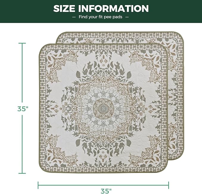 FXW Washable Pee Pads for Dogs, Puppy Pads with Super Absorbent, Specifically Designed for Potty Training, 35" Square, Boho, 2 Packs
