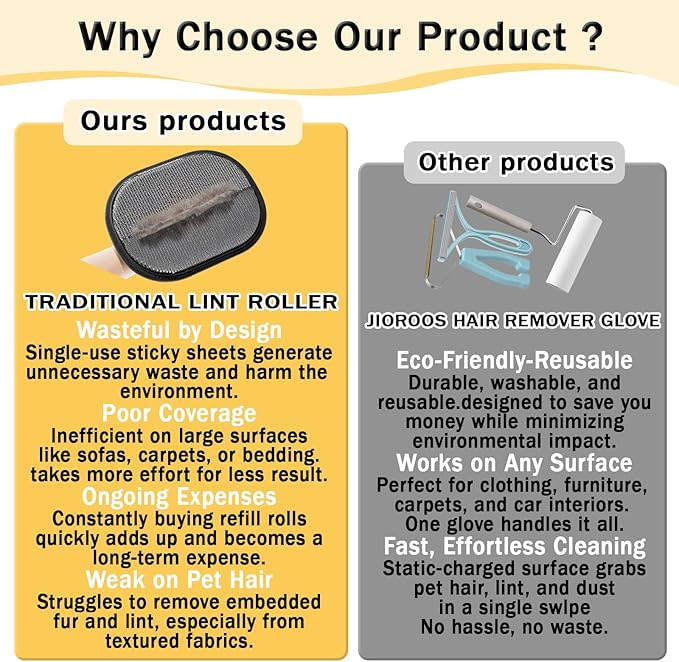 - Electrostatic Gloves for Pet Hair:Made with soft, skin-friendly materials,Utilizes electrostatic adsorption principles to attract and collect hair, eliminating the need for sticky tape or replacement consumables,Comfortable to wear, goodbye to fatigue
