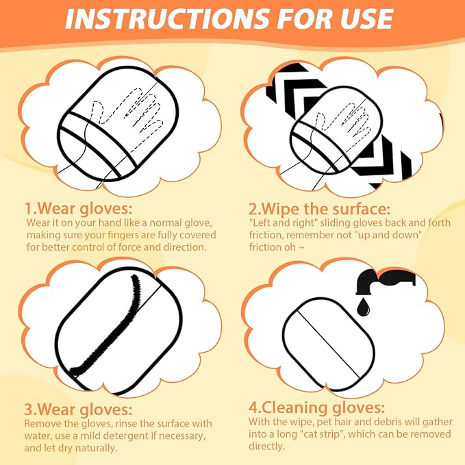 - 🐶【Gentle Pet Comfort】Skin-safe silicone/TPR cat hair remover glove surfaces. These pet hair cleaning gloves prevent irritation during grooming without sharp tools.