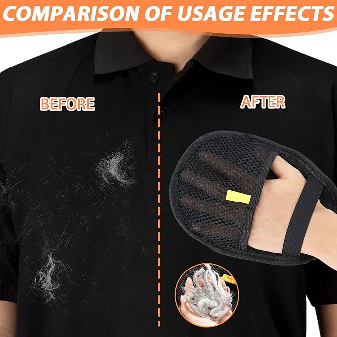 - 🐶【Multi-Surface Versatility】Pet hair remover glove works on clothing, cars, and pet bedding. One pair handles cats/dogs/all fur types effectively.